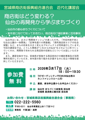 - (3/17開催)「商店街はどう変わる?仙台の再開発から学ぶまちづくり」のご案内