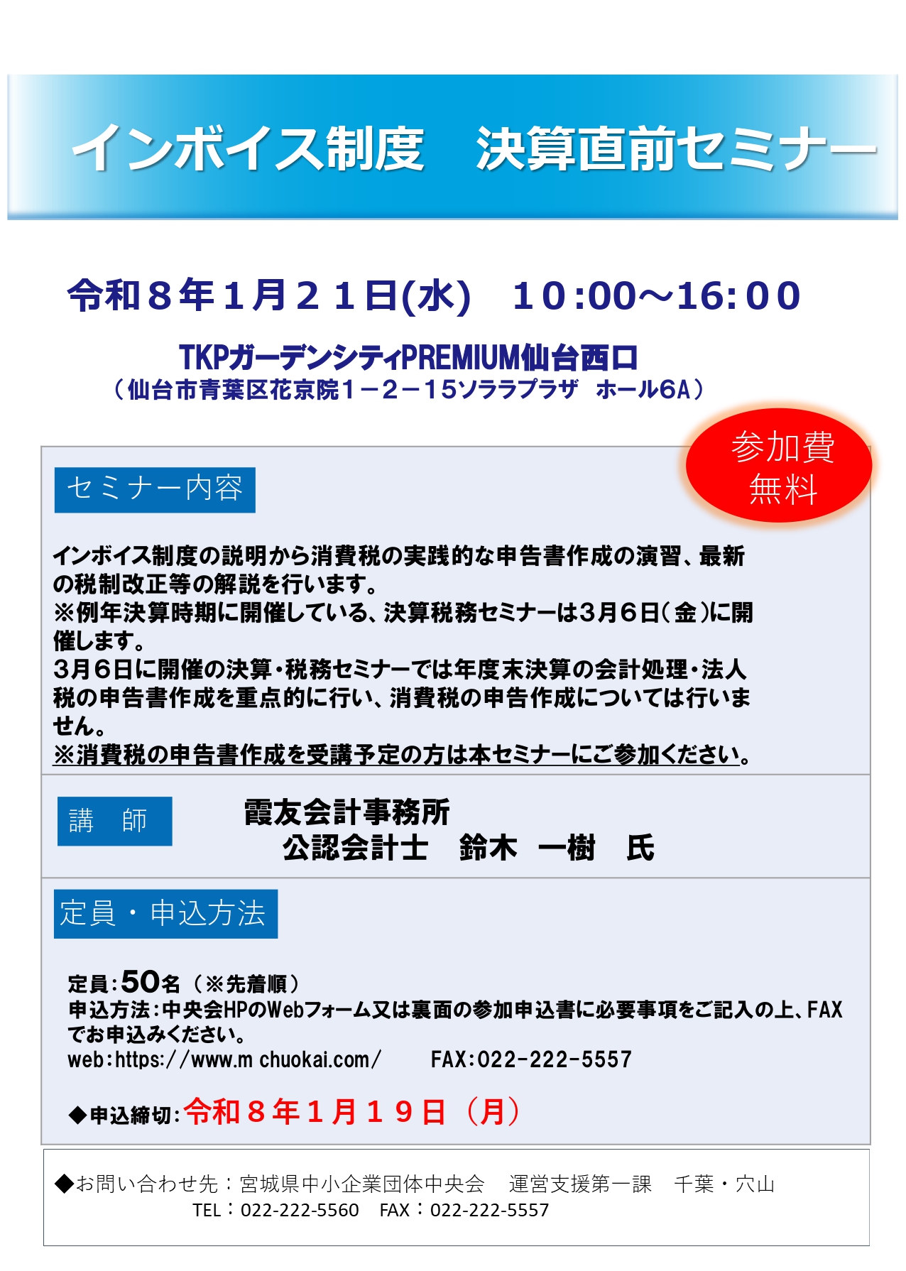 【お問い合わせ先】宮城県中小企業団体中央会 運営支援第一課 担当:千葉・穴山